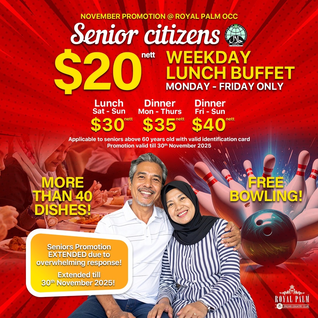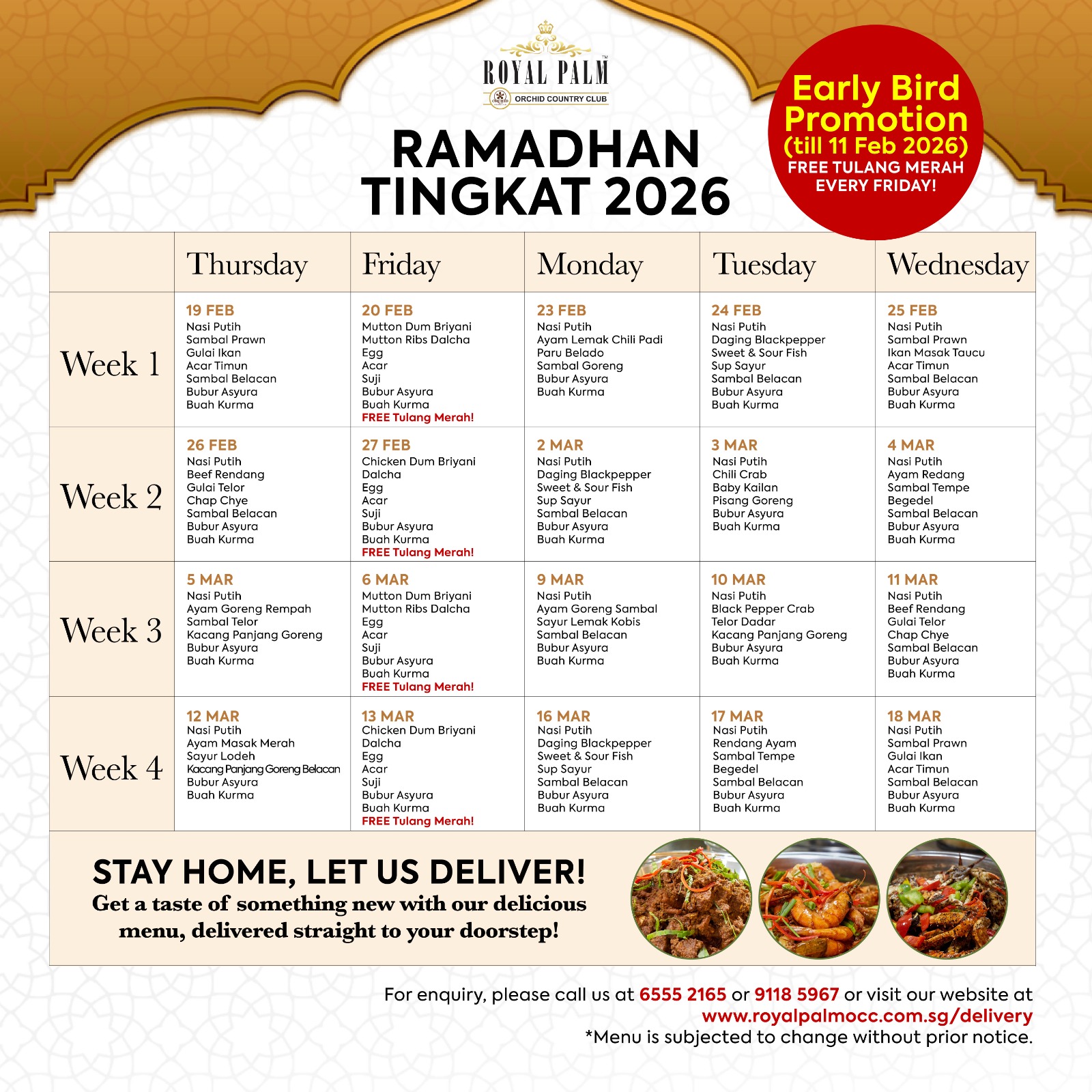 Royal Palm @ Orchid Country Club welcomes you and your loved ones to feast on our international halal buffet this Ramadan. Donβt miss out on our ππ₯ππ πππ’πͺ 1-for-1 Buffet promotion where you can enjoy more than 40 dishes!